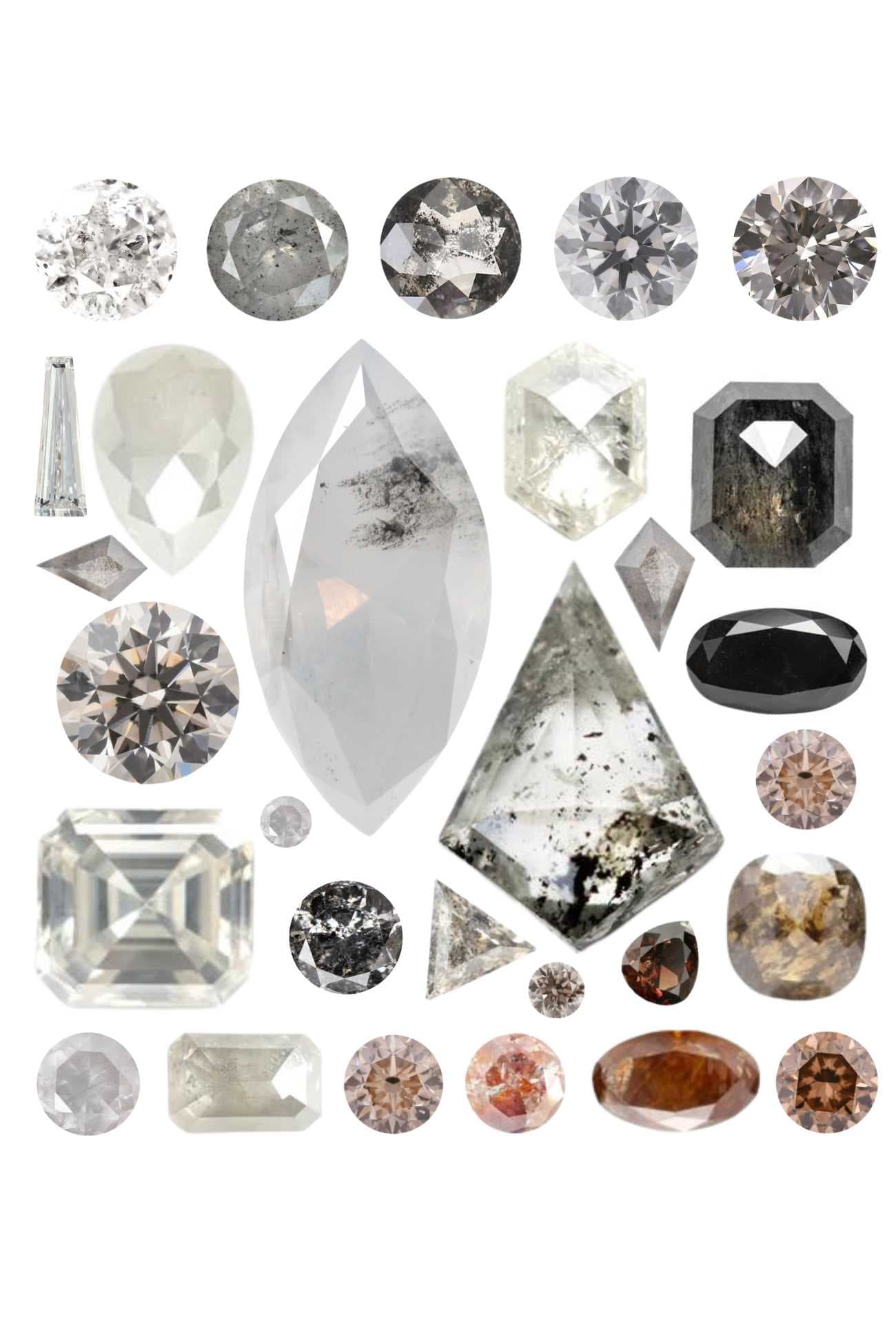 Auch SaltPepper-Diamanten gibt es in verschiedenen Ausführungen. Wie der Name bereits sagt, handelt es sich um klare Diamanten mit punktuellen schwarzen Einschlüssen, die an Salz und Pfeffer erinnern.